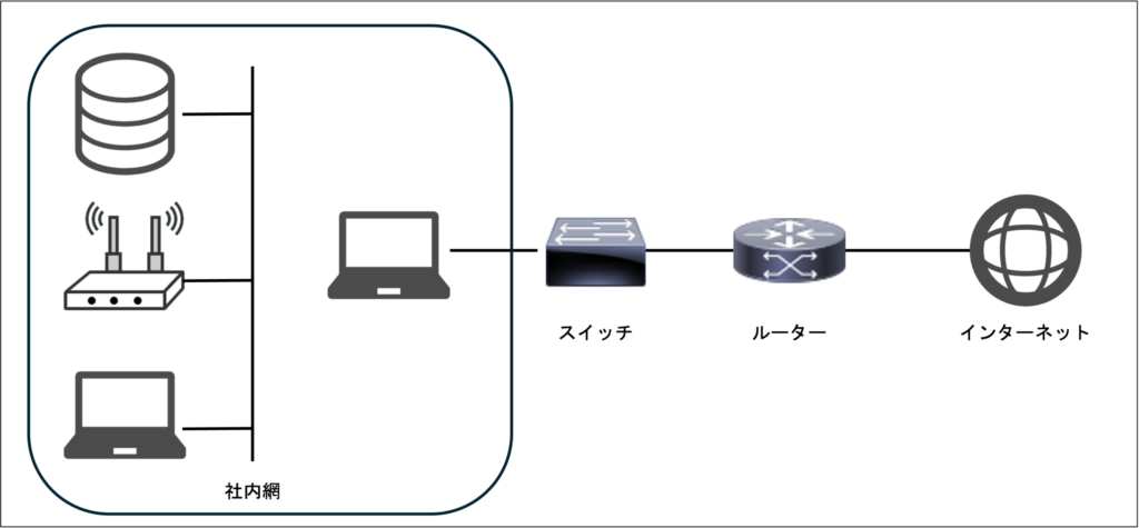 この状態では、外部の端末がそのまま社内ネットワークに接続できてしまいます。